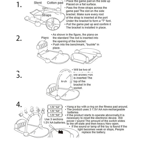 Sensory Stimulation: Features music, lighting, and a 4-key piano with lights on the feet, allowing the child to enjoy music by pressing with their feet and strengthening their leg muscles. The gym is 100% safe and non-toxic for your child, suitable for babies from birth to 36 months old.